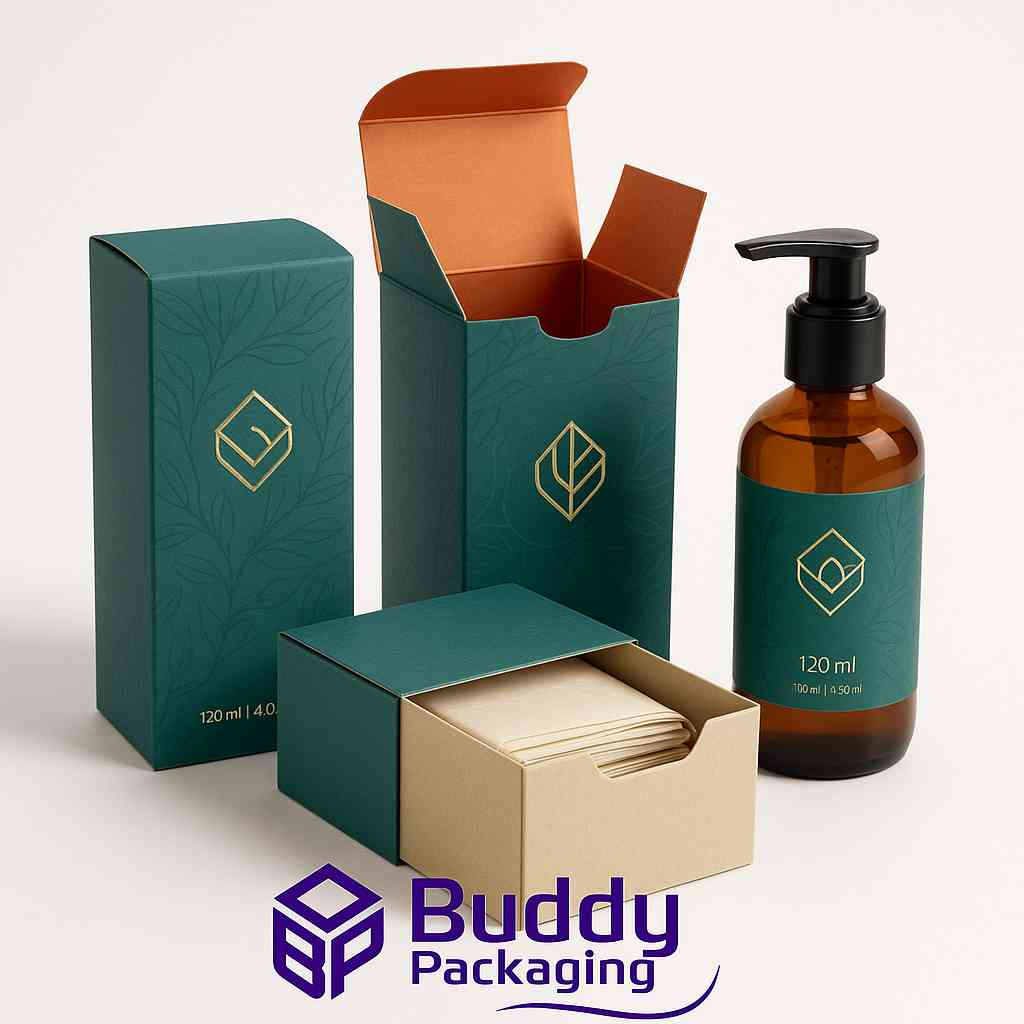 Custom packaging is more than just protection; it is branding that leaves a lasting impression. Our Custom 120ml Bottle Boxes are designed to fit your products perfectly while showcasing a premium look that builds customer trust. Whether you deal with essential oils, tinctures, cosmetics, or beverages, Buddy Packaging ensures every box matches your requirements.