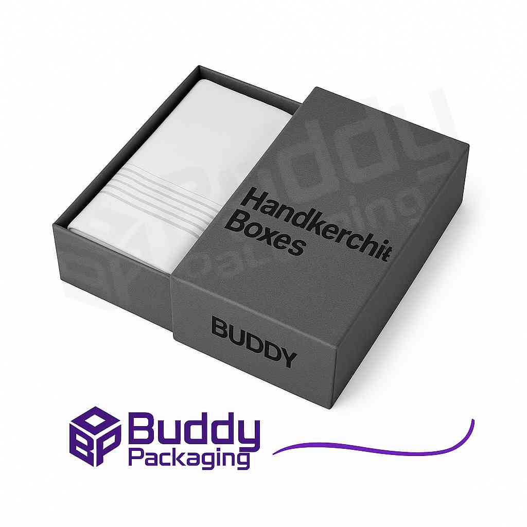 Enhance your product packaging with custom handkerchief boxes by BUDDY PACKAGING LTD. We offer eco-friendly materials, premium finishes, and durable packaging tailored to your needs. Whether you are ordering Apparel Sleeve Boxes, Eyeshadow Boxes, Nail Polish Boxes, Mascara Boxes, or Makeup Boxes, Buddy Packaging has the perfect solution to elevate your brand. Visit our Custom Boxes page or Contact Buddy Packaging today to place your order!