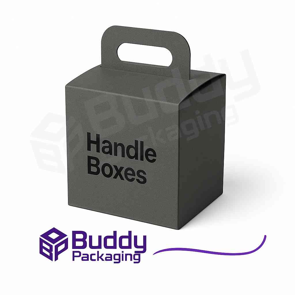 Upgrade your packaging with custom handle boxes by BUDDY PACKAGING LTD. Our eco-friendly materials, stylish designs, and durable construction ensure practical and elegant packaging solutions. From Apparel Sleeve Boxes to cosmetic packaging like Eyeshadow Boxes, Nail Polish Boxes, Mascara Boxes, and premium Makeup Boxes, we provide everything you need to impress customers. Visit our Custom Boxes page or Contact Buddy Packaging today to place your order!